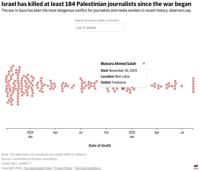 This chart shows the names of every Palestinian journalist killed by Israel in Gaza since the war started, alongside information on when and where they were killed and which media outlet they worked for. (AP Digital Embed)