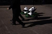 Panda images appear in and outside of the Ueno zoo on cookies and sweets, stuffed dolls, stationery and photo books. Panda statues sit outside a train station. A department store has a section dedicated to panda goods.