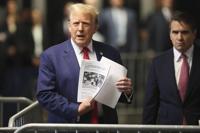 The former president complained about the gag order that bars him from talking about jurors, witnesses and some others connected to the case, telling reporters: “I have to watch every word I tell you people ... because this judge has given me a gag order and said you’ll go to jail if you violate it.”