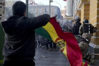 Supporters of President Luis Arce flooded into the plaza outside and waved Bolivian flags soon afterward.