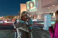 Danielle Bensky wipes a tear as a World Without Exploitation projection is seen on the wall of the ºÃÉ«tv Gallery of Art calling on Congress to vote yes on the Epstein files transparency act in Washington, Monday, Nov. 17, 2025. (AP Photo/Jose Luis Magana)