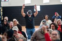 A drum circle played afterward and chanted for the jubilant crowd that got up after waiting patiently for the vote in folding chairs and gym bleachers.
