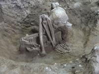This undated photo provided by Hirofumi Matsumura shows a 9,000-year-old mummy in Guangxi, China, in a squatting position. (Hirofumi Matsumura via AP)