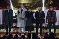 Singers Kevin Richardson, from left, AJ McLean, Nick Carter, Howie Dorough and Brian Littrell of the Backstreet Boys participate in the Rockefeller Center Christmas tree lighting ceremony on Wednesday, Dec. 4, 2024, in New York. (Photo by Andy Kropa/Invision/AP)