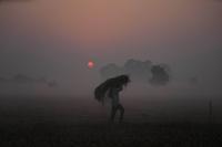 An Indian villager walks with fodder on a cold, foggy morning near the India-Pakistan international border in Ranbir Singh Pura, about 35 kilometers (22 miles) south of Jammu, India, Monday, Nov.24, 2025.(AP Photo/Channi Anand)