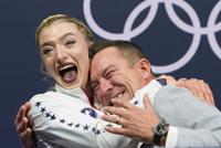 Amber Glenn of the United States reacts to her score after competing in the women's figure skating free program at the 2026 Winter Olympics, in Milan, Italy, Thursday, Feb. 19, 2026. (AP Photo/Stephanie Scarbrough)