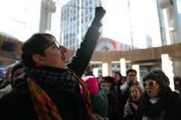 The Rev. Elizabeth Barish Browne traveled from Cheyenne, Wyoming, to participate in the rally in downtown Minneapolis, where the high temperature was minus 9 degrees Fahrenheit (minus 23 degrees Celsius) despite a bright sun.