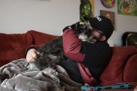 Lucas, left, and Eli play video games on their couch at their home in Casselberry, Fla., May 29, 2023. The Associated Press is not using Eli’s and Lucas’ last names because they fear reprisal. After recent legislation caused Lucas to lose access to his gender affirming care, the couple began making plans to leave Florida, a decision they aren't making lightly. (AP Photo/Laura Bargfeld)