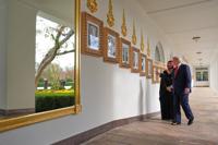 Trump showed the prince the newly-installed Presidential Walk of Fame that features gold-framed images of past presidents along the West Wing colonnade and in place of the Democrat’s official portrait.