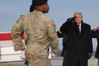 He gazed straight ahead as each case passed in front of him, though he turned to look after the first one was placed inside the vehicle. The remains were taken to the on-base mortuary for processing before they are released to the families.
