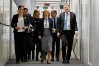 European Union foreign policy chief Kaja Kallas, center, walks with Minister for Foreign Affairs and Research of Greenland Vivian Motzfeldt, left, and Denmark's Defense Minister Troels Lund Poulsen, right, prior to a meeting at EU headquarters in Brussels, Monday, Jan. 19, 2026. (AP Photo/Geert Vanden Wijngaert)