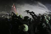 Protesters, many young and masked to avoid identification, hurled harsh words to the police and Erdogan and booed those in their ranks who threw bottles and flares at security forces to avoid elevated violence akin to Sunday's police interventions.