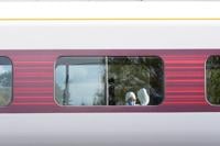 A train is parked at the station after a mass stabbing on a London-bound train in Huntingdon, England, Sunday, Nov. 2, 2025.(AP Photo/Kirsty Wigglesworth)