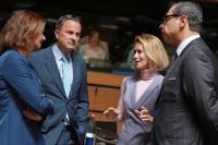 European Union foreign policy chief Kaja Kallas, second right, speaks with from left, Slovenia's Foreign Minister Tanja Fajon, Luxembourg's Foreign Minister Xavier Bettel and Cypriot Foreign Minister Constantinos Kombos during a round table meeting of EU foreign ministers at the European Council building in Luxembourg, Tuesday, April 21, 2026. (AP Photo/Virginia Mayo)