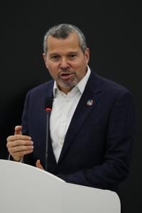 Arsenio Dominguez, secretary-general of the International Maritime Organization, speaks at an event on the energy transition of global shipping during the COP30 U.N. Climate Summit, Monday, Nov. 10, 2025, in Belem, Brazil. (AP Photo/Fernando Llano)