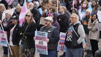 People gather in support of transgender youth during a rally at the Utah State Capitol Tuesday, Jan. 24, 2023, in Salt Lake City. Utah lawmakers on Friday, Jan. 27, 2023, gave final approval for a measure that would ban most transgender youth from receiving gender-affirming health care like surgery or puberty blockers. (AP Photo/Rick Bowmer)