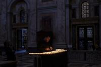 A man lights a candle inside the St. Paul's Outside The Walls Basilica in Rome, Wednesday, Feb. 26, 2025. (AP Photo/Bernat Armangue)
