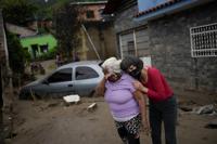 Women embrace in a flooded street outside their home in Las Tejerias, Venezuela, Sunday, Oct. 9, 2022. Days of heavy rain caused flash floods and overflowed Las Tejerias River. (AP Photo/Matias Delacroix)