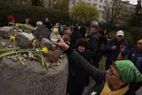 A large group held private unofficial observances at other sites across the former ghetto, placing yellow daffodils or wearing small paper daffodils that in recent years has become a symbol of remembering the uprising.