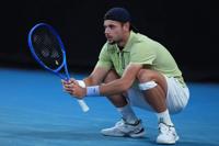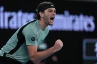 Taylor Fritz of the U.S. reacts during his second round match against Vit Kopriva of the Czech Republic at the Australian Open tennis championship in Melbourne, Australia, Thursday, Jan. 22, 2026. (AP Photo/Asanka Brendon Ratnayake)