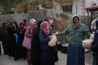 Palestinian women line up to receive donated food at a community kitchen in Deir al-Balah, central Gaza Strip, Wednesday, Jan. 21, 2026. (AP Photo/Abdel Kareem Hana)