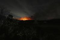 Video released by the state agency overseeing the fire service showed billowing white and black clouds of smoke, intense flames engulfing pines and firefighters dousing a charred structure.