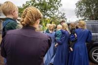 FILE - Family and followers of polygamous sect leader Samuel Bateman gather around as he calls from police custody following his arrest in Colorado City, Ariz., on Sept. 13, 2022. On March 24, 2023, federal charges were filed against Josephine Barlow Bistline, who is believed to be married to Bateman and is accused of sending threatening emails to child welfare workers in a bid to get her two daughters released from state foster care. (Trent Nelson/The Salt Lake Tribune via AP, File)