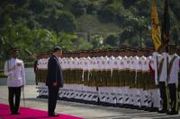 Chinese President Xi Jinping inspects honor guards during the official welcoming ceremony at the national palace in Kuala Lumpur, Malaysia, Wednesday, April 16, 2025. (AP Photo/Vincent Thian, Pool)